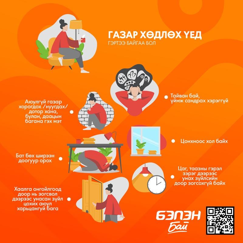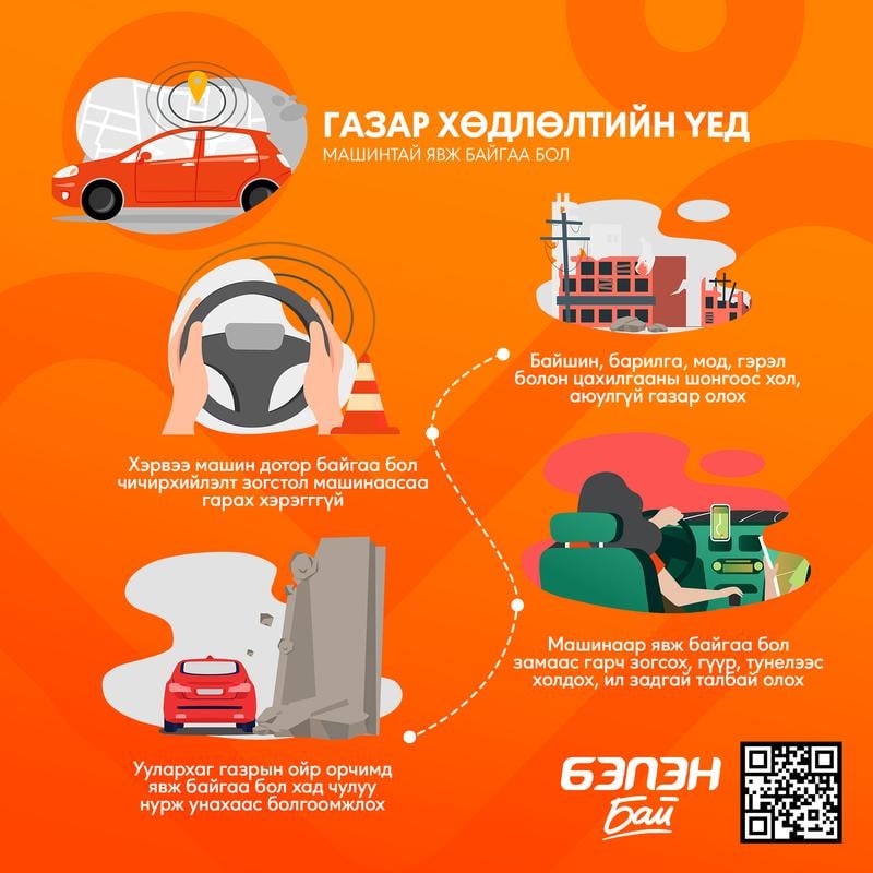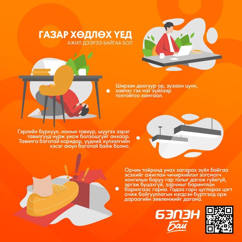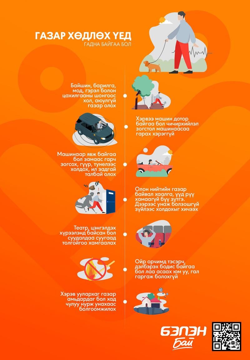 Монгол Улсын Засгийн газрын 2017 оны 67 дугаар тогтоолоор жил бүрийн гуравдугаар сарын дөрөв дэх долоо хоногийн Лхагва гарагийг “Газар хөдлөлтийн аюулаас урьдчилан сэргийлэх, таниулах өдөр” болгосонтой холбогдуулан өнөөдөр улс орон даяар энэ өдрийг тэмдэглэн өнгөрүүлж байна. Иймд иргэд та бүхэн газар хөдлөлтийн гамшгийн аюулаас урьдчилан сэргийлэх, эрсдэлийг бууруулах, бэлэн байдлыг хангах, газар хөдлөлтийн гамшигтай тэмцэх байнгын бэлэн байдлыг хангах мэдлэг, мэдээллээ дээшлүүлж, болзошгүй эрсдэлээс гэр бүл болон бусад гишүүдийг хамгаалах үүрэгтэй.